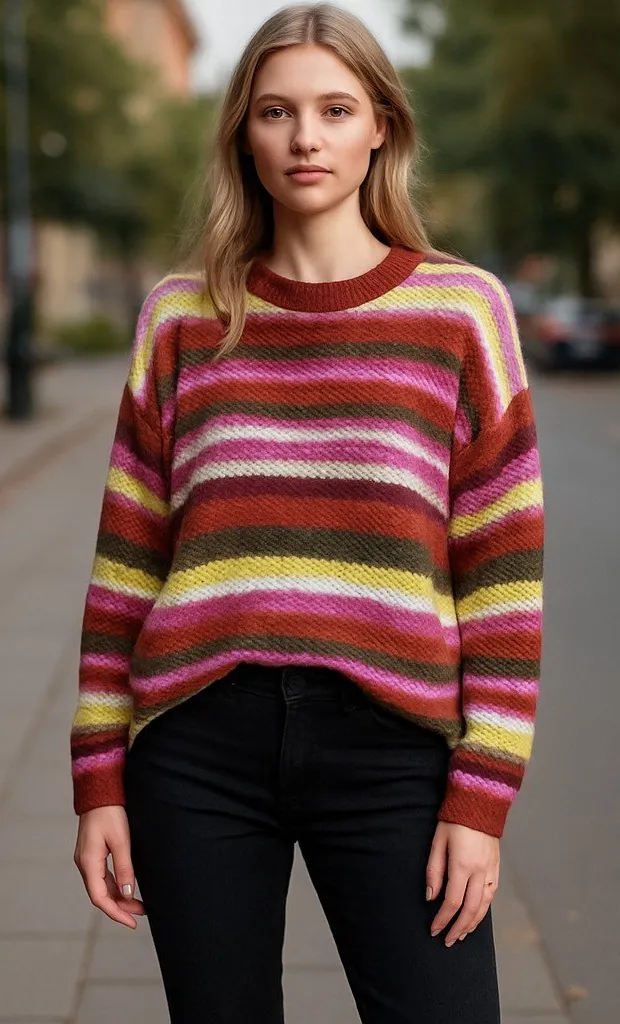 Multicolored Stripped Pullover styling Round neckline Long sleeve 60% cotton 40% Acrylic Brand... Show more