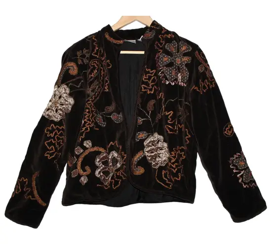 Women's Chico's Brown Tan Cotton Polyester Floral Print Dress Formal Long Sleeve Blazer Suit Coat Ja... Show more
