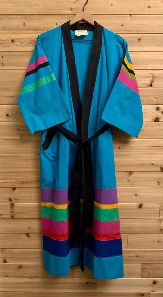 Bright Colorful Thick Linen Or Canvas Material Full Length Long Sleeve Robe With Pocket & Belt. No S... Show more