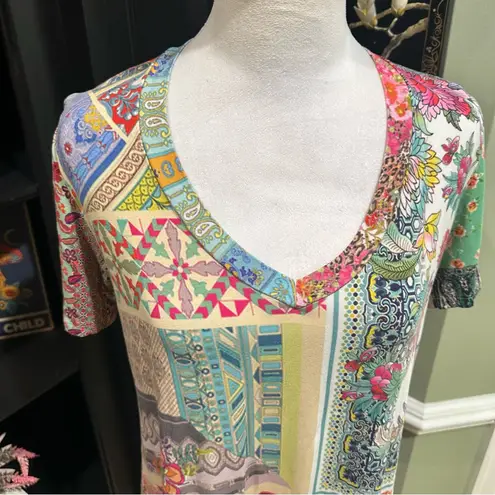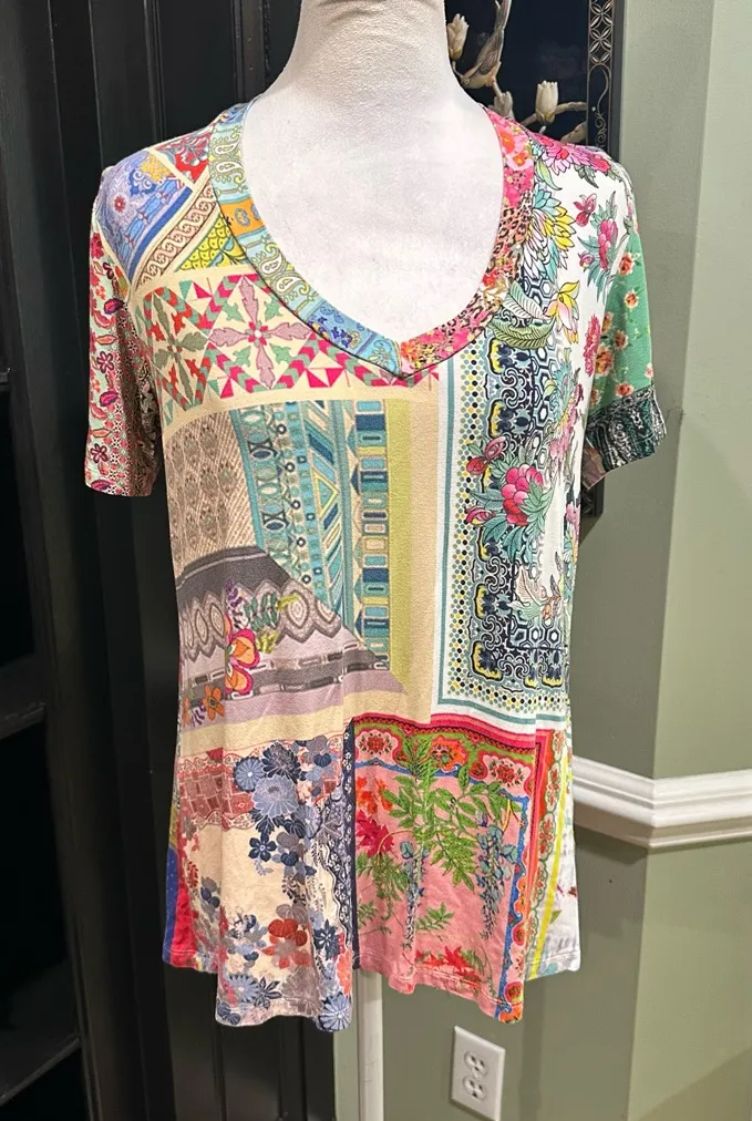 This gorgeous Johnny Was Anika Short Sleeve V-Neck Swing Tee features a bold patchwork floral print... Show more