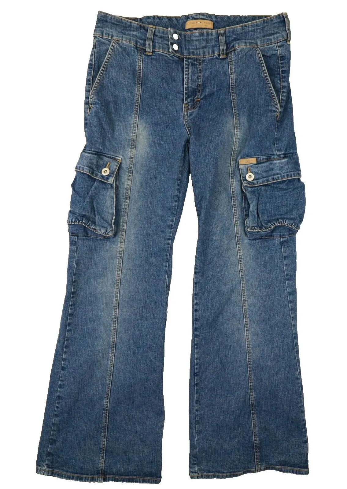 Elevate your denim game with these Tommy Hilfiger Women's Y2K Medium Wash Boot Cut Cargo Pocket Jean... Show more