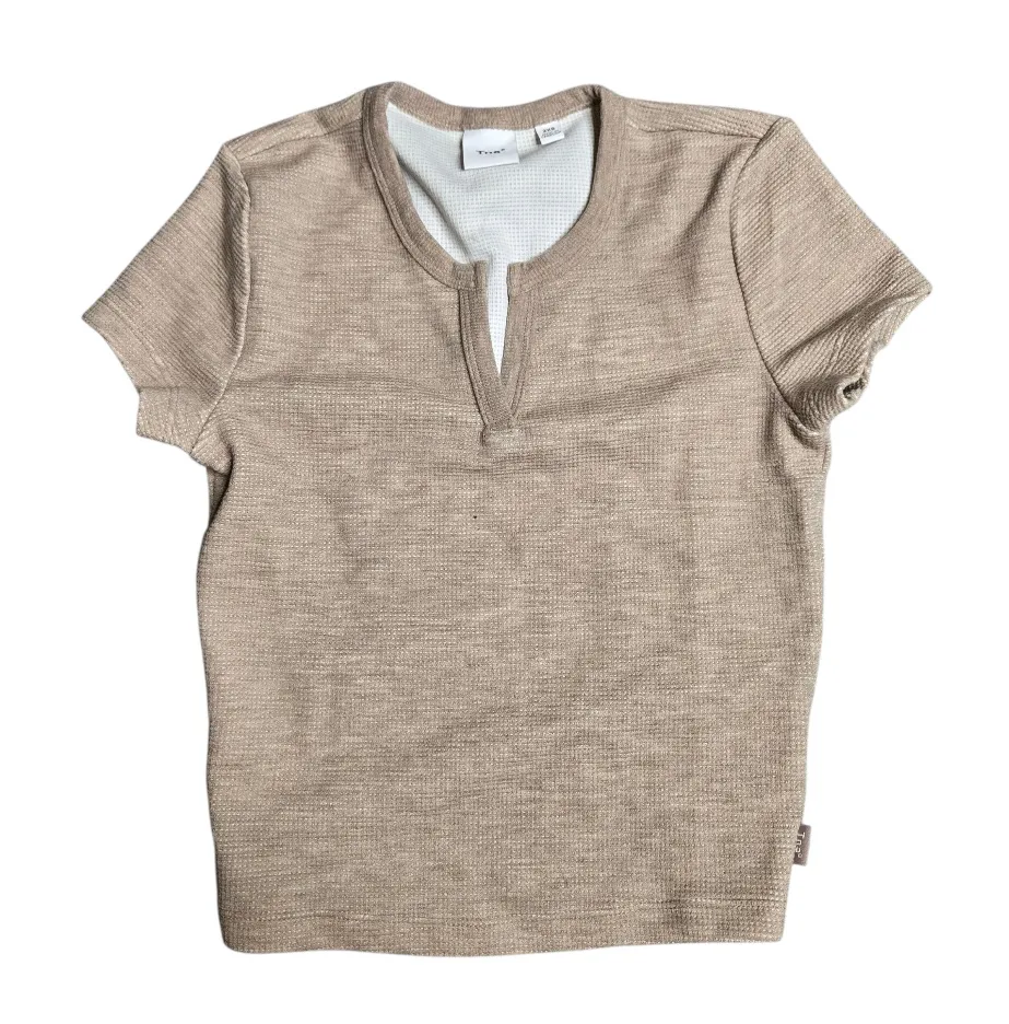 Aritzia TNA Beige Waffle Knit Short Sleeve Top Tan Size XXS - $20 (58% Off Retail) - From Denise