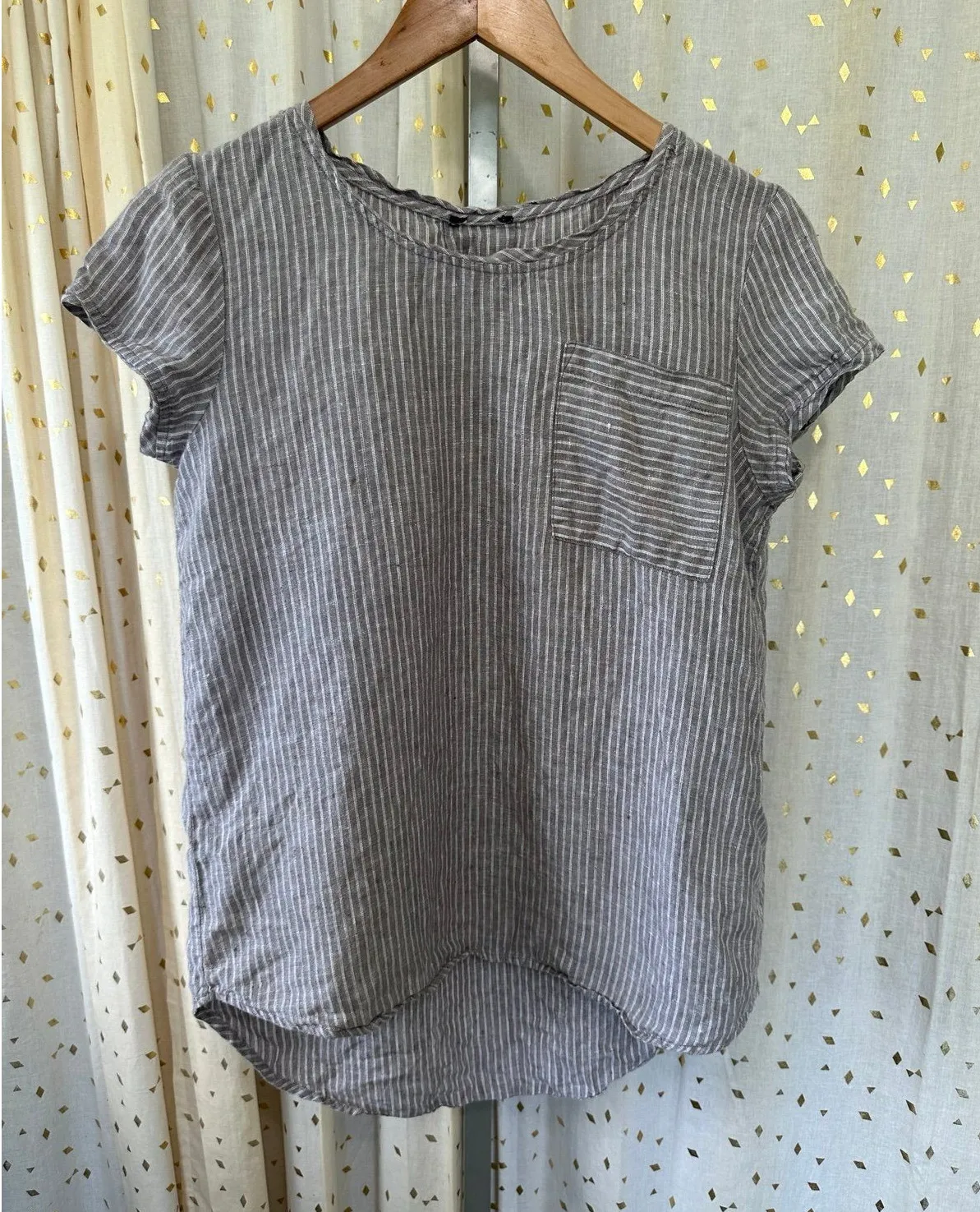 ID# It's used, properly cleaned and in good condition Unbranded Women's 100% Linen Crew Neck Pin Stripe Hi Lo Hem Tunic Blouse S Boho Indie Ethnic Rhapsody Gypsy Festival Rave Hippie Shabby Chic cottagecore cabincore prairie peasant beach beachy beachwear ocean shore surf coastal nautical cruise vacation resort wear travel friendly summer spring Color descriptions are suggestive and product color may vary due to photographic lighting sources or your monitor settings. I cannot guarantee the exact color shade Please familiarize yourself with this brand’s sizing as every brand may fit differently APPROXIMATE Measurements with a deviation of +/- 0.5 inches P2P: 19.5" length: 24.25" curved 6oz Please review pictures to see the specific condition of the item you are purchasing. Stock photos give inspiration. No fit guarantee. Please ask questions. I want you to be happy with your purchase