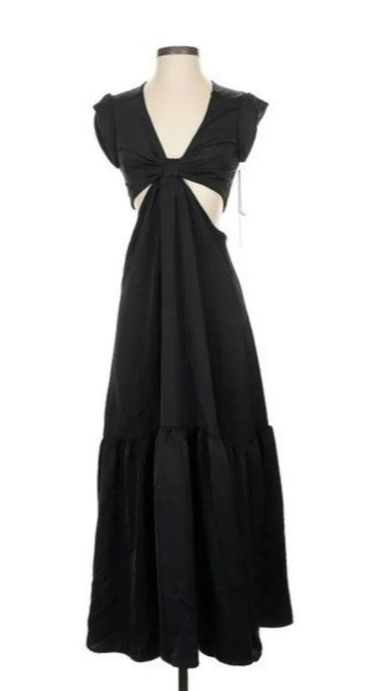 New with tag Jason Wu Black Cut-Out Satin Soft Glam Midi Dress XS • Features a stylish cut-out desig... Show more