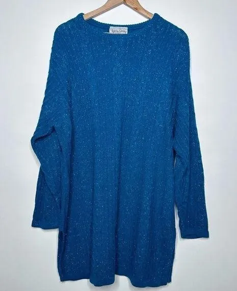 Great pre-owned condition. Teal with teal metallic threading. Pullover. Side Slits. Acrylic/Lurex.... Show more