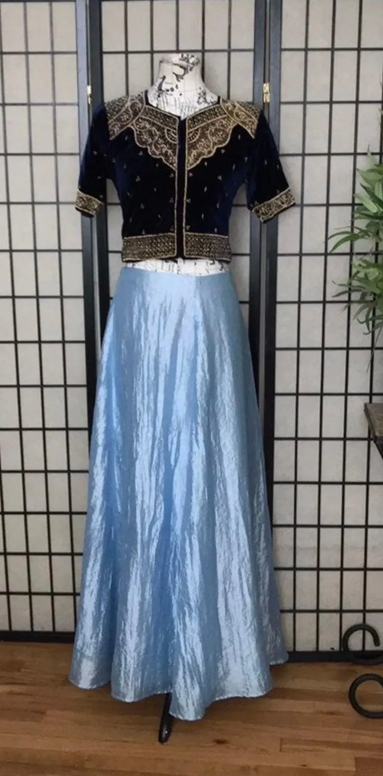 KERA Vintage Medieval Velvet Top VEST Blouse Versatile Crop Jacket Bolero Shawl Metallic threads details short sleeve buttons up square neck cropped print Snow-White Disney Princess corset embroidered Unique piece! Collectors Lace up Corset back adjustable for better fit see measurements, Mannequin is sz S for your reference sz S-L PP 20 TL 16 blue Royal cobalt Gold Halloween Costume Theatre Dance Baroque Dutches century XIV XVI clothing Maxi skirt can be included for $15 more is Vintage Y2k 90’s but zip is damaged IT WORKS but with care last See pic. KERA Medieval Vest top crop jacket velvet bolero 3/4 sleeve embroidered corset All sales are final
