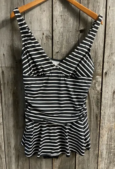 TARGET Clean Water one piece V-neck striped skirted suit - size XL - flattering ruched and skirted o... Show more