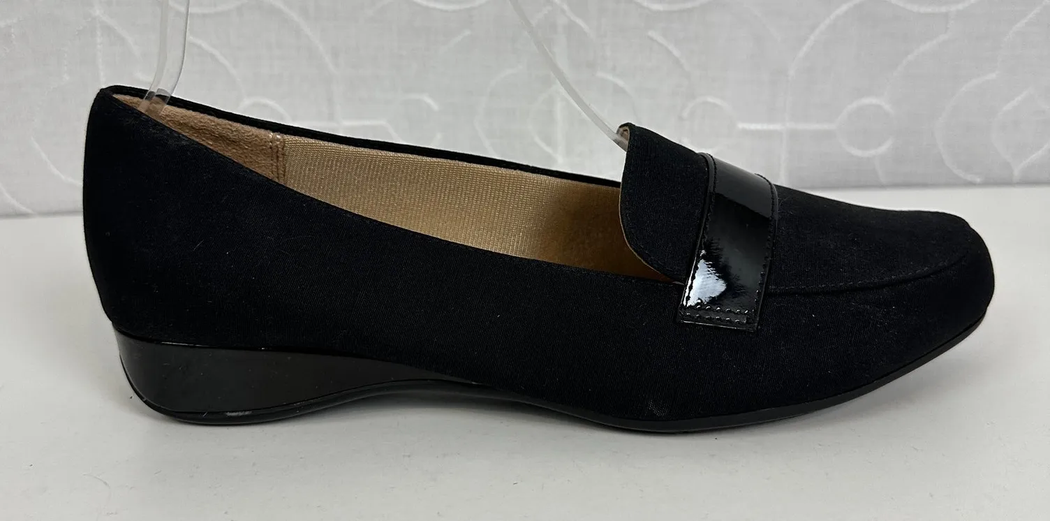 Abella Desiree Women’s Shoes Size 7.5 Black Wedge Slip-On Round Toe Loafers NEW Product Description: Measurements: 16" w x 2” heel - Brand: Natralizer - Condition: Gently Used - Desiree - Wedge Heel - Slip-On - Round Toe - Fabric Content: 91% Meryl Nylon 9% Spandex - Color: Black Thanks for shopping with me today! I ship on orders received by 3pm each day. Please feel free to inquire.