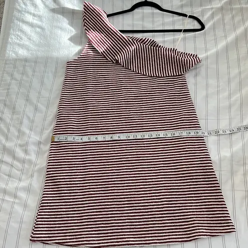 Beautiful one shoulder Ruffle dress Rust red and ivory stripes One pocket on each side Size small