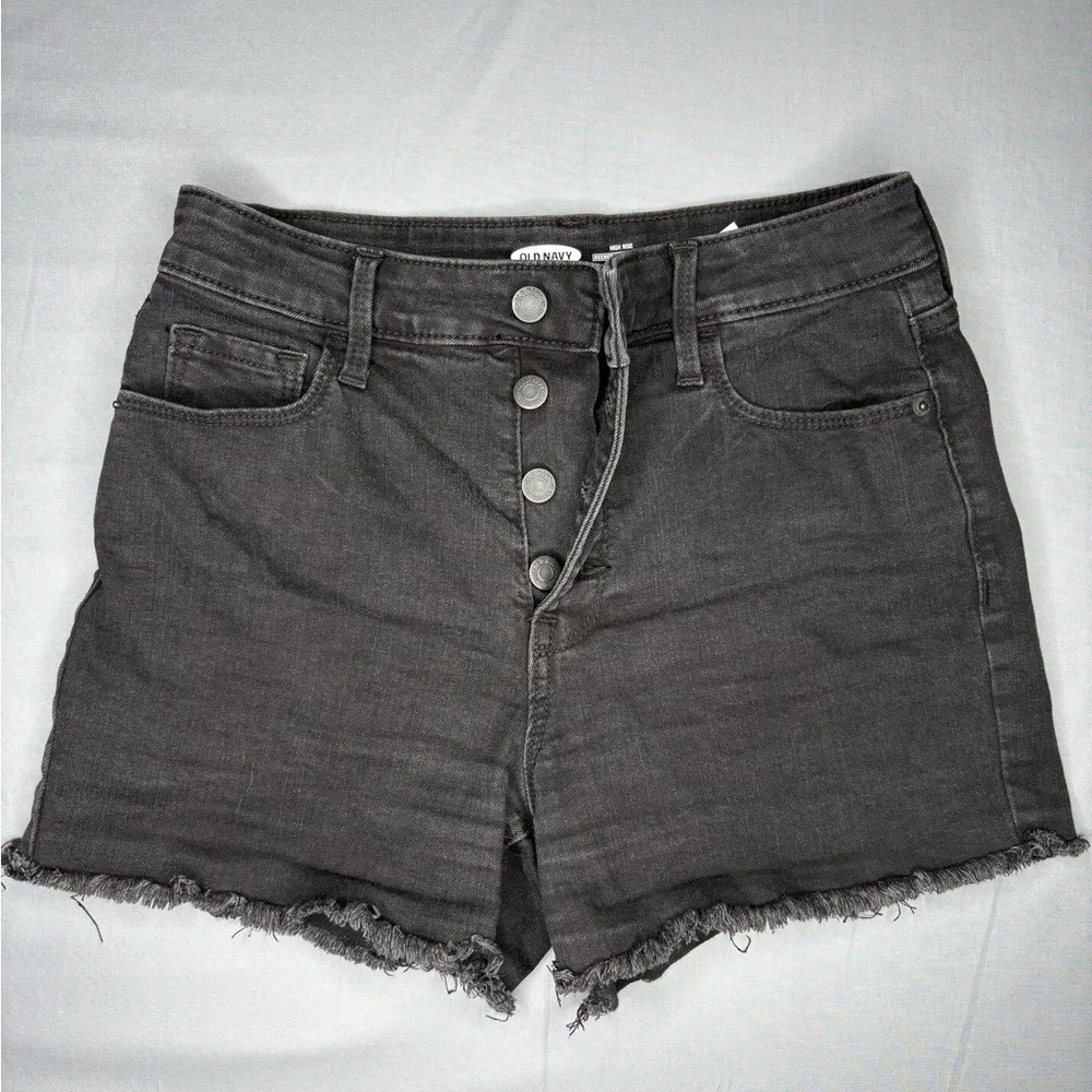 Features a classic button fly front, high-rise, secret slim pockets with a frayed hem for a trendy l... Show more