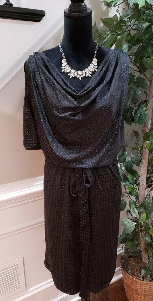 Description Jessica Simpson Womens Black Textured Dots One Shoulder Drape Sheath Dress 20W. Produc... Show more