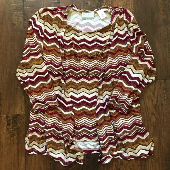 in very nice gently worn condition. Size Petite Medium. This is one stop dressing with a top built into the cardigan and the necklace built into the whole piece! Please review all images and ask questions prior to purchase. Color may vary based on lighting.
