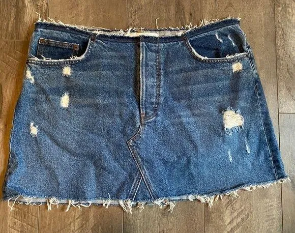 Reformation Westin Raw edge denim skirt 31 NWOT