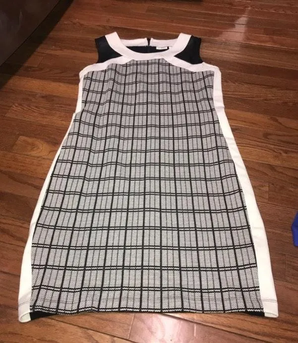 Size 8. Cato brand. Grey and black plaid with leather at neckline
