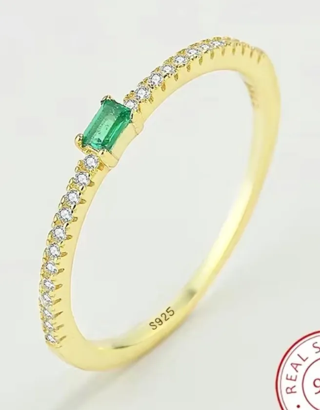 BNIB - Green Stone S925 Sterling Silver Ring - 14K Gold Plated. Size 8 - $44 (26% Off Retail) New With Tags - From Aaron