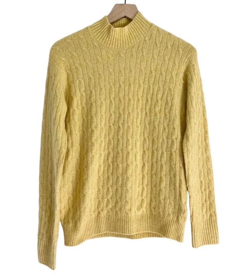 J. Crew Factory women’s wool blend cable knit mock neck sweater in extra soft yarn in yellow. Size s... Show more