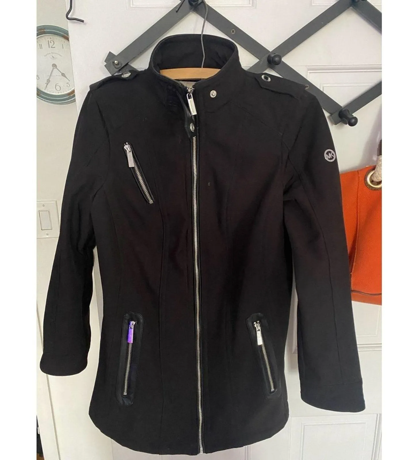 Michael Kors Women's Water Resistant full zip pockets black Jacket Black XS Size: XS Jacket/Coat Length: Short Accents: Zipper Character: -- Department: Women Style: Basic Jacket Fabric Type: Softshell Outer Shell Material: Polyester Season: Fall Theme: Designer Pattern: Solid Type: Jacket Features: Belted, Full Zip, Lined, Pockets, Water Resistant, Wind-Resistant, Zipped Pockets Color: Black Vintage: No Closure: Zip Occasion: Casual Brand: Michael Kors Insulation Material: Polyester Size Type: Regular