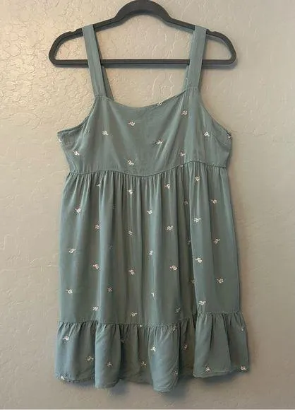 Copper Key sage green sleeveless dress with cactus print White embroidered cacti all over Smocked s... Show more