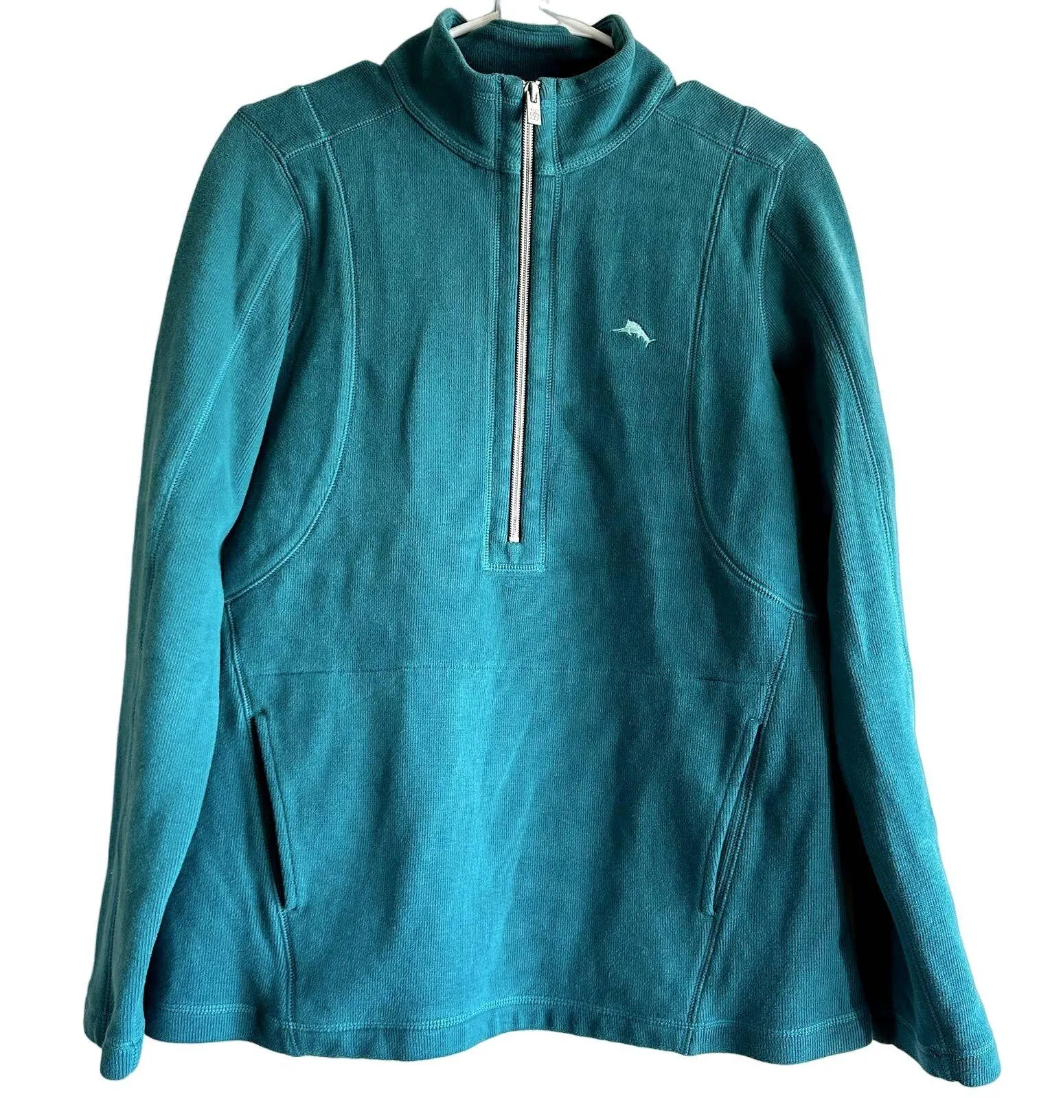 Tommy Bahama Half Zip Sweater Embroidered Logo High Neck Cotton Blend Long Sleeve Blue excellen... Show more