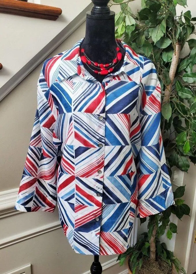 . Product Detail • Brand : Alfred Dunner • Size: 24W • Color: Multicolor • Type: Top • Materia... Show more