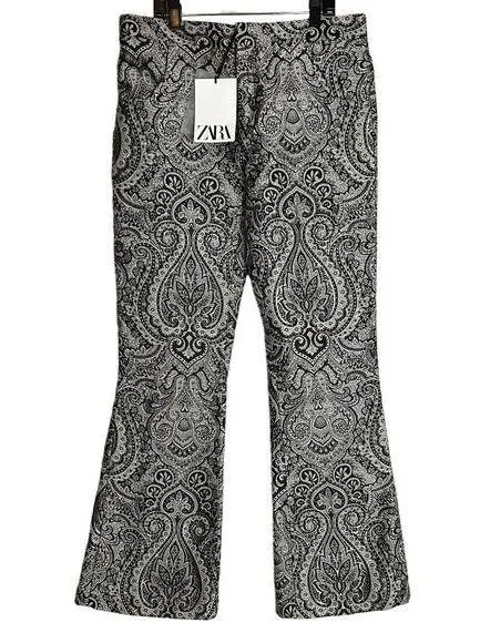 Zara black silver jacquard pants limited edition Sz M NWT New with tag Mid rise Side hidden inseam... Show more