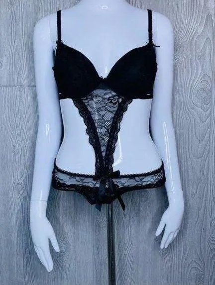 Prime Valentina black lace sheer bodysuit lingerie Teddie with bows small - $36 (25% Off Retail) - From Sara