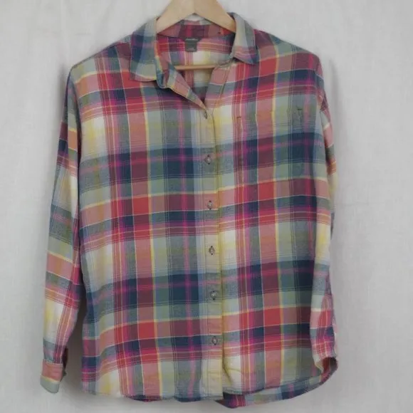 This listing is for a Eddie Bauer Long Sleeve Collared Shirt. It is made of a cotton blend flannel f... Show more
