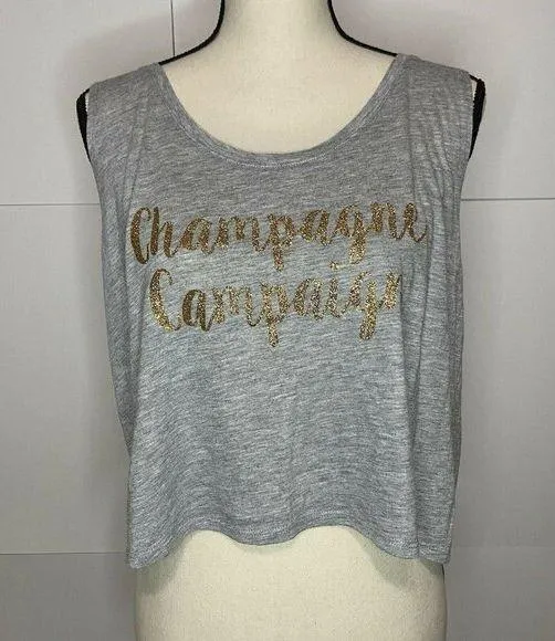 Bella Canvas “Champagne Campaign” Gray Crop Tank Top L/XL Glitter EUC Size L - $19 (32% Off Retail) - From Elizabeth
