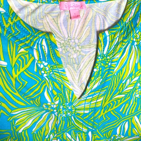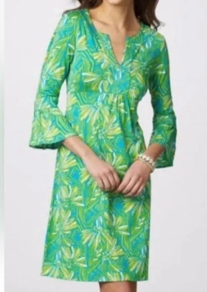 Lilly Pulitzer Twyla Dress in a vibrant green and blue palm leaf print. Crafted from a luxurious ble... Show more