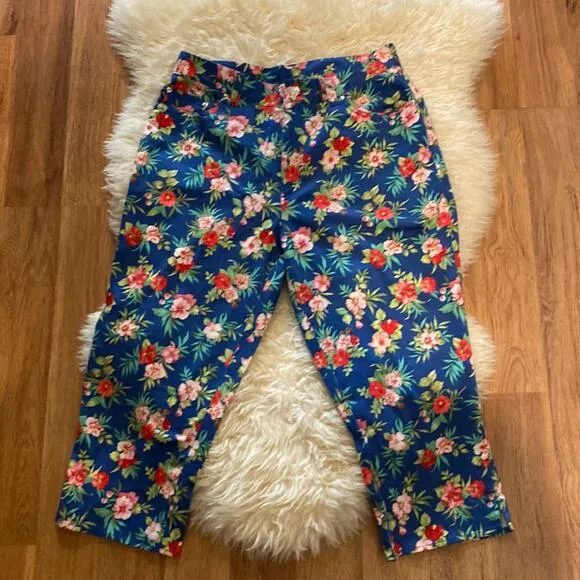 Adorable!!! Lauren Ralph Lauren colorful & vibrant floral cropped capris pants. Blue, green, pink &... Show more