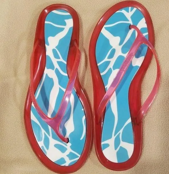 ♠️Kate Spade♠️ Jelly Flip Flops Kate Spade written on top (see pic) Blue and white design with dar... Show more