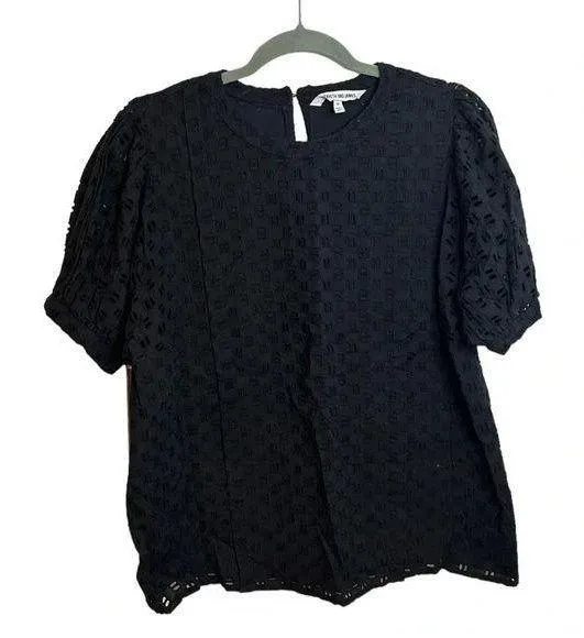 Pre owned excellent condition. Worn once or twice. Adorable black eyelet puff sleeve blouse. Has key... Show more