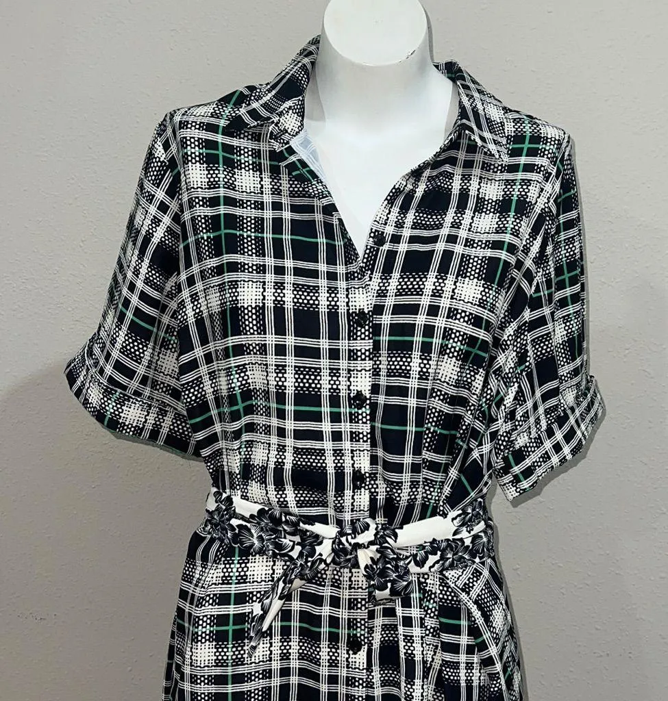 Eloquii plaid button up tie waist shirt dress Black Size 18 - $45 - From Erika