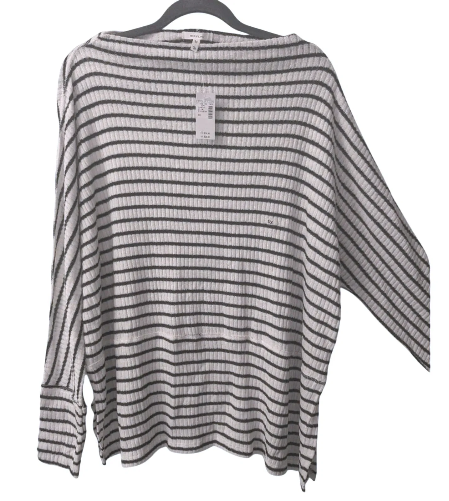 Maurice's plus size 0 equals 0X Black/White Striped Tunic top shirt, boat neck, side slits, so cute!... Show more