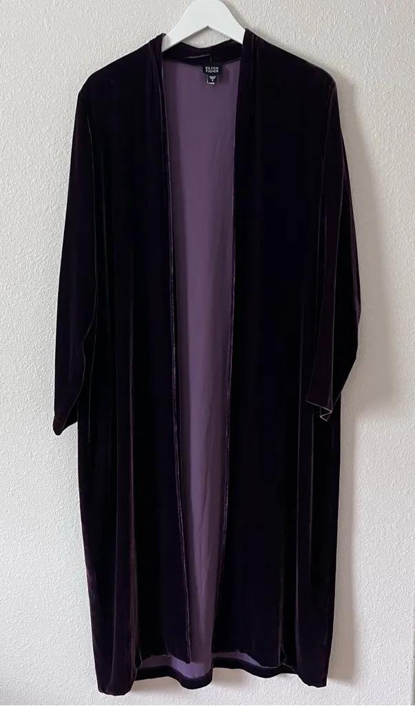 Eileen Fisher Long Plum Purple Velvet Duster Coat Size: Small Beautiful Condition Color: Dark Purp... Show more