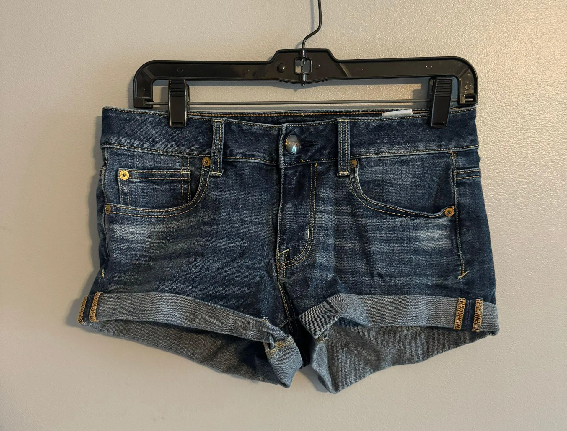 No rips American Eagle dark wash denim shorts. In great condition fit true to size.