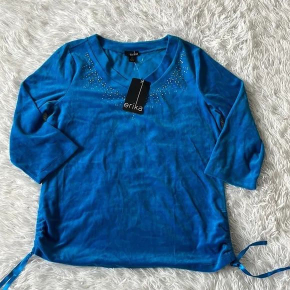 Erika Women’s V neck embellished Neckline long sleeve top size Medium New - $20 - From Annavelyn