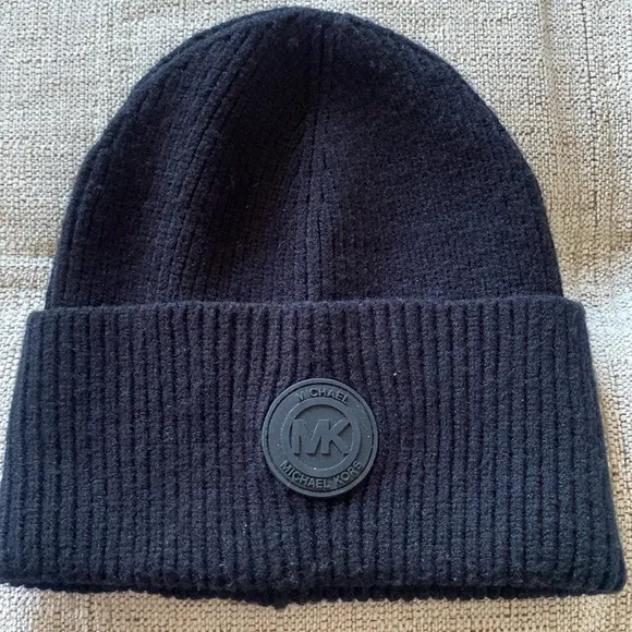 New Without Tags Michael Kors Women's Rib Rubber Patch Cuff Beanie Hat A rib-knit beanie hat adds a... Show more