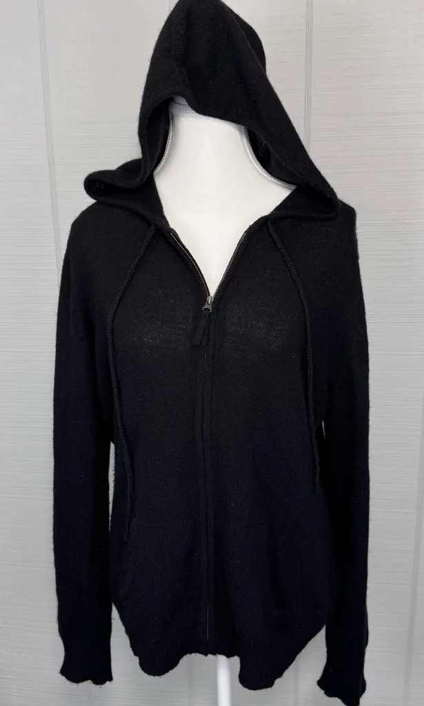 Claudia Nichole gothic emo black cashmere zip up hoodie sweater with a rhinestoned skull on the slee... Show more
