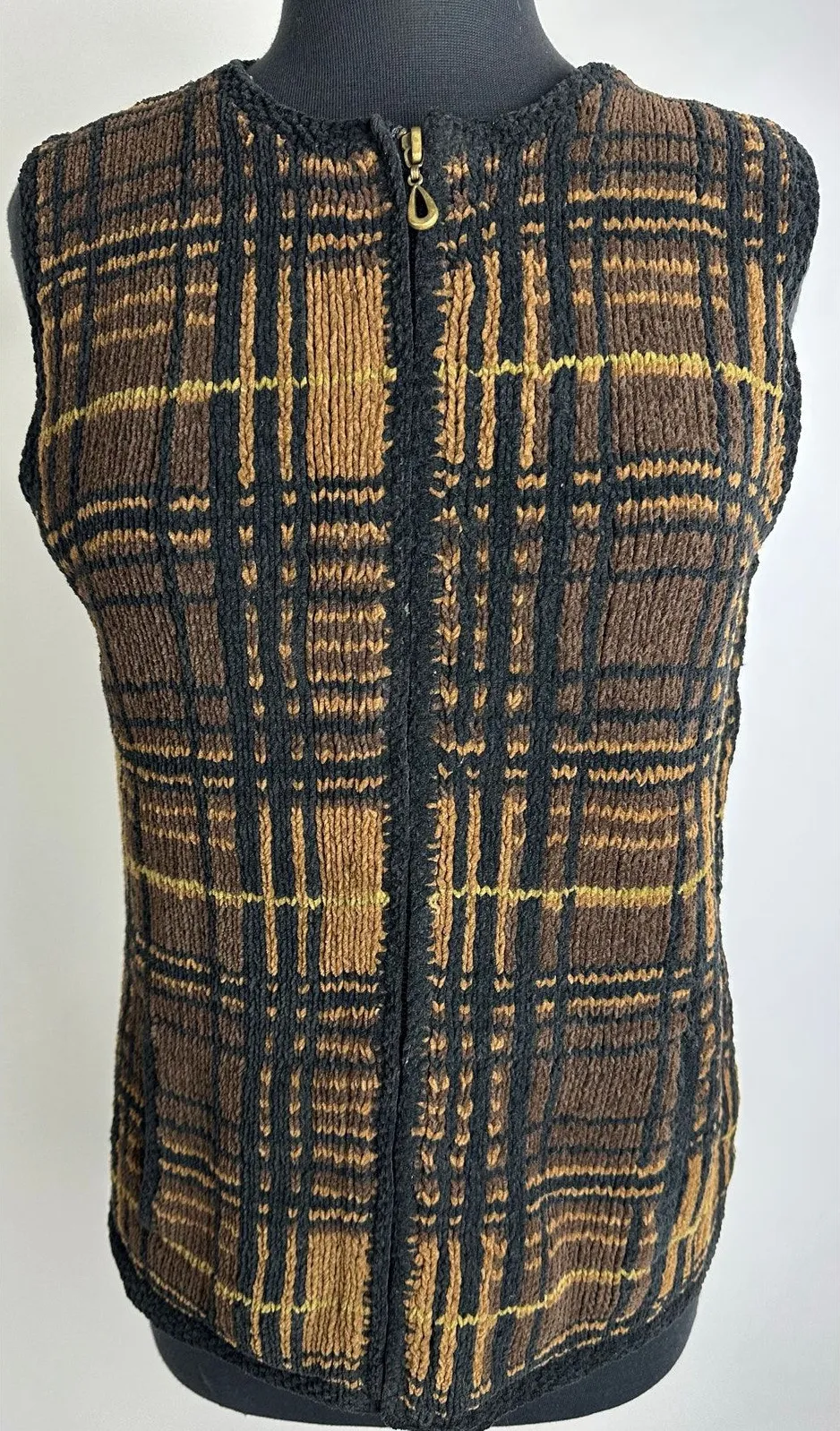 Vintage Harold's Knit Sweater Vest Size Large Features: Brown and Black Woven Knit Full Zip Pock... Show more