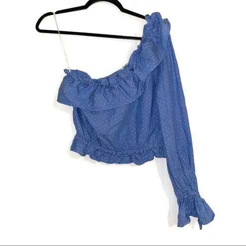 Revolve Tularosa Elinor chambray one shoulder ruffle dotted top with elastic neck and waist. Size:... Show more