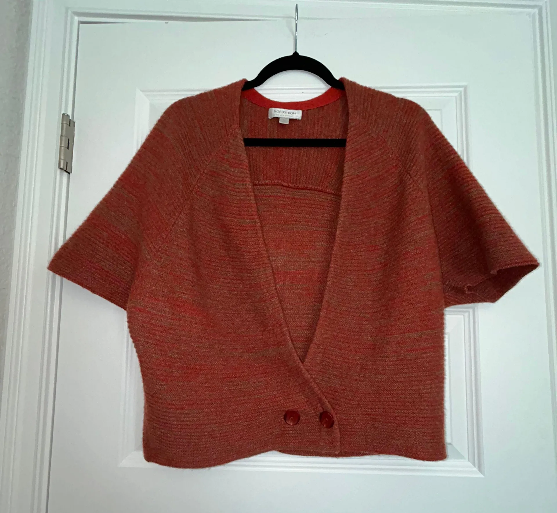 Nordstrom Collection Button Front Wrap Short Sleeve Ribbed Cashmere Sweater Top Size M Color Orange,... Show more