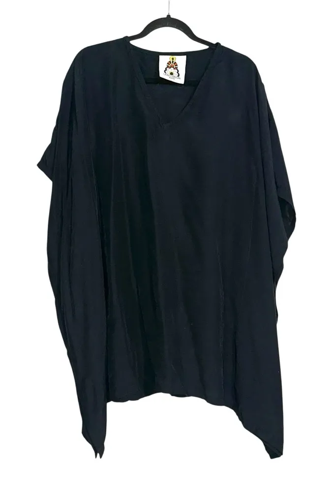 Elegant black poncho with a V-neck design by Carla Christoph. Ideal for layering. NOTE: No size tag... Show more