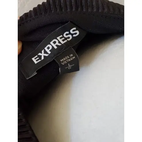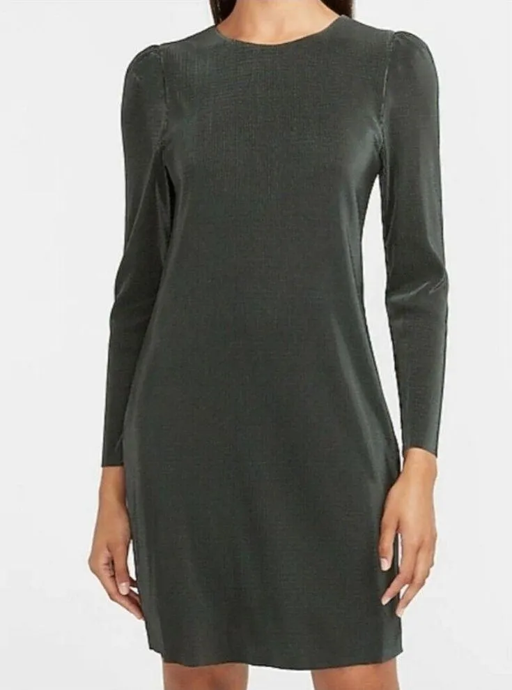 Express Womens Black Pleated Puff Shoulder Long Sleeve Shift Dress Large. NWT.