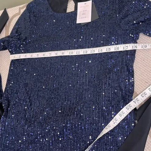 Dress Forum Navy Sequin Balloon Sleeve Contrasting satin Belt,keyhole Back Dress Blue - $41 New With Tags - From Maria