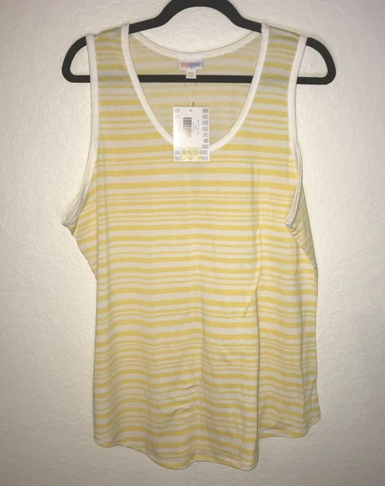Gorgeous BNWT LuLaRoe 3X Tank Top in Yellow w/ White Stripes! The tank tops fit like a sleeveless cl... Show more