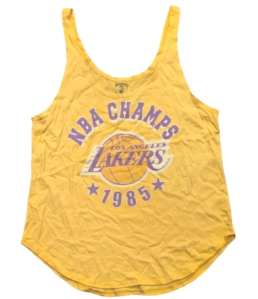 Brand New from Hardwood Classics!! Yellow LA Lakers 1985 NBA Champs tank top! Scoop neck, scoop back, lightweight! Tagless for comfort. 60% Cotton, 40% Polyester. Show your LOS ANGELES LAKERS LOVE!! Large Bust: 42" Around Hem: 44" Length: 24"/27"