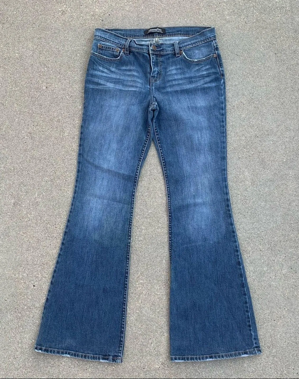 London Jean Y2K flare leg jeans. 98% cotton. Size 10 Victoria's Secret line of jeans from late 90s to early 2000s Flat measurements are approximate waist 16 1/2 inches front rise 9 inches hips at bottom of zipper 19 inches inseam 33 inches leg opening 11 inches