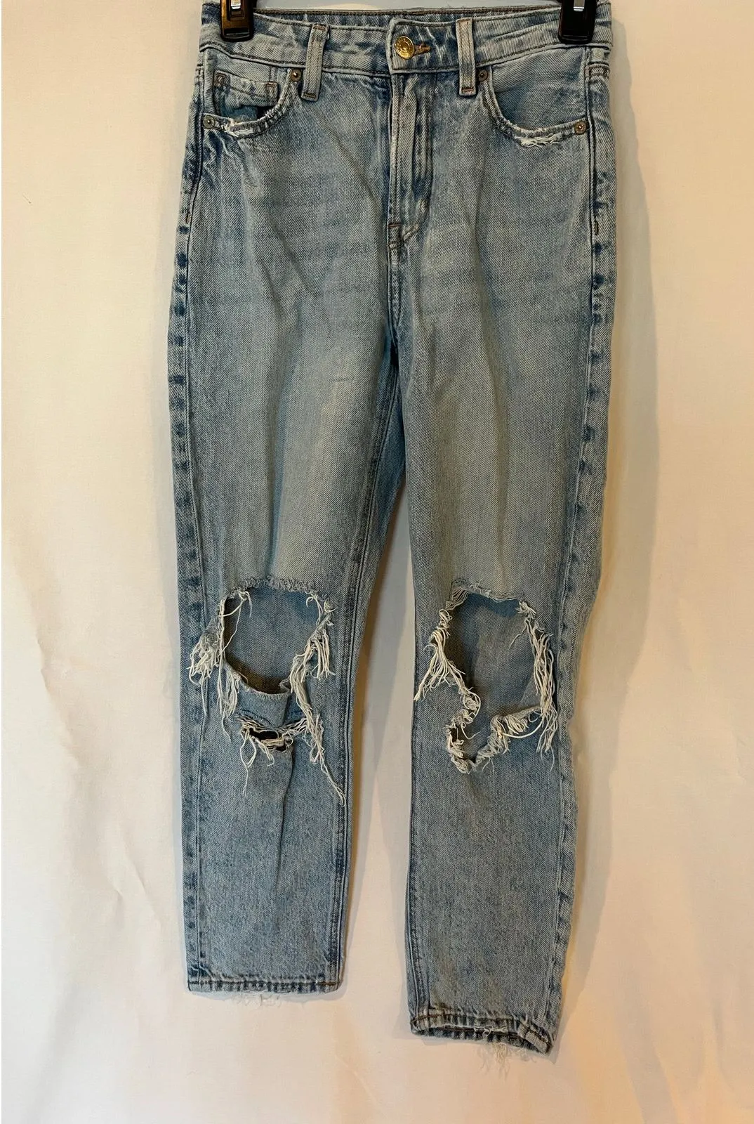 Discover the perfect blend of comfort and style with American Eagle's Mom Jeans in a size 0 Short. T... Show more