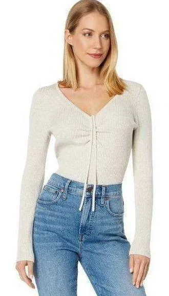 Madewell Women’s Ibiza V Neck Cinch Front Slim Fit Long Sleeve Ribbed Pullover Sz XL. Ptp is 17. Le... Show more